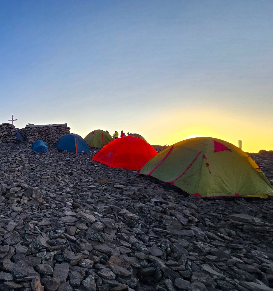 Չնայած բարձրության և ծանրության մարտահրավերին, երեխաները մի անսպառ ոգևորությամբ էին շարժվում դեպի գագաթ։ Երբ հասանք վերև, Արագածն ամբողջությամբ ողողված էր մայրամուտի հրաշալի գույներով․ դեղին, վարդագույն, տաք նարնջագույն՝ մի իսկական գեղանկար, որը ինքը բնությունն էր նկարում մեզ համար։ Բայց հիանալով շատ չենք տարվել՝ պետք է հասցնեինք մթնելուց ու ցրտելուց առաջ տեղադրել վրանները։ Եվ, ինչքան էլ աներևակայելի թվա, Արագածի քարքարոտ գագաթին հաջողեցինք տեղադրել տասներկու վրան։