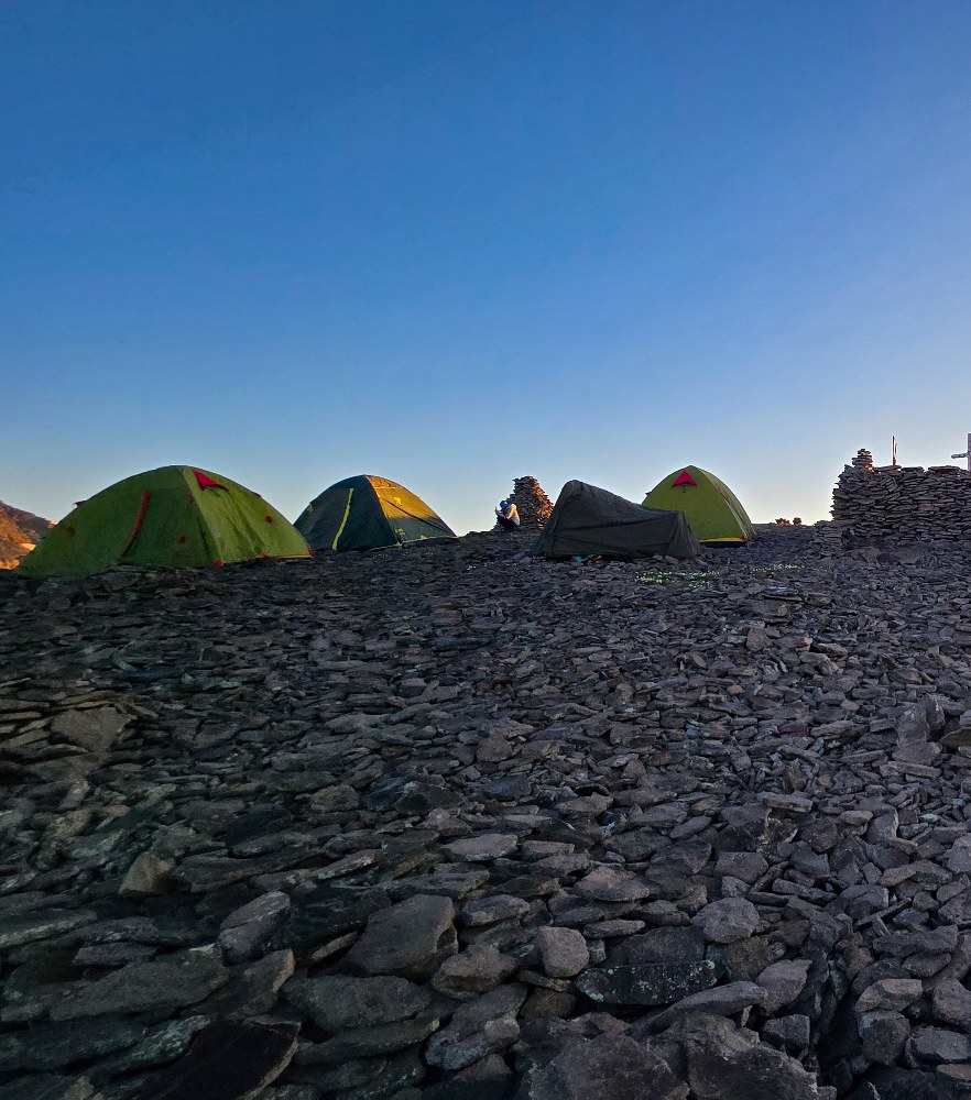 Այս վերելքը յուրահատուկ էր նաև նրանով, որ քայլելը սկսեցինք ոչ թե վաղ առավոտյան, այլ երեկոյան՝ ժամը 16:00-ին։ Այդ ժամն ընտրել էինք հատուկ, որպեսզի գագաթ հասնենք այն պահին, երբ մյուս խմբերը արդեն իջած կլինեն, և մենք կկարողանանք հանգիստ տեղադրել վրանները՝ ոչ ոքի անհանգստություն չպատճառելով։