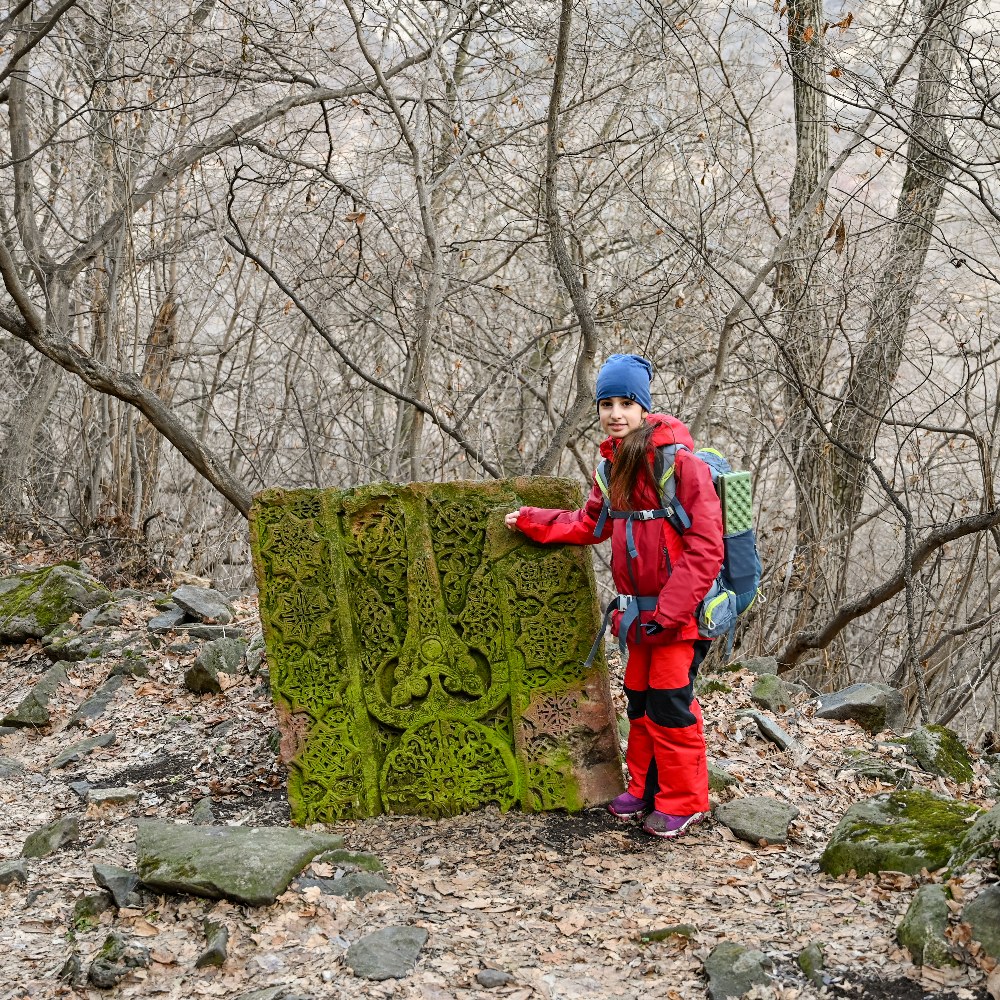 Արահետի կեսին, անտառի խորքում, մեզ դիմավորեց Բարձրաքաշ Սուրբ Գրիգորի վանքը։ Լուռ, բայց հզոր, ավերված, բայց միևնույն ժամանակ՝ կանգուն։ Նրա շուրջը՝ բազմաթիվ մամռակալած խաչքարեր, որոնց վրա ժամանակը թողել էր իր կանաչ հետքը։ Մենք կանգ առանք այստեղ ոչ միայն հանգստանալու, այլ նաև լսելու։ Երեխաներին պատմեցինք այս վայրերի պատմական ու մշակութային ժառանգության մասին, խաչքարերի խորհուրդը, վանքի նշանակությունն ու պատմությունը, կառուցվածքի առանձնահատկությունը և թե ինչու է կարևոր ճանաչել ու պահպանել նման վայրերը։